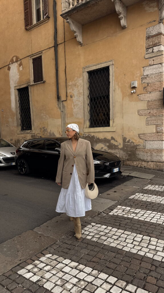 Πιστεύω πως δεν έχω ούτε ένα κομμάτι που να μη με κάνει να νιώθω άνετα. Από τα παπούτσια – έχω μόνο kitten heels γιατί τα ψηλά με κουράζουν – μέχρι τα ρούχα που δεν με πιέζουν, δεν με ζεσταίνουν, και δεν χρειάζονται σκέψη. Θέλω να διαλέγω ό,τι μου κάνει ‘κλικ’ εκείνη τη μέρα, χωρίς δεύτερη σκέψη. Δεν συμβιβάζομαι με το ‘όμορφο’ αν δεν είναι και λειτουργικό.